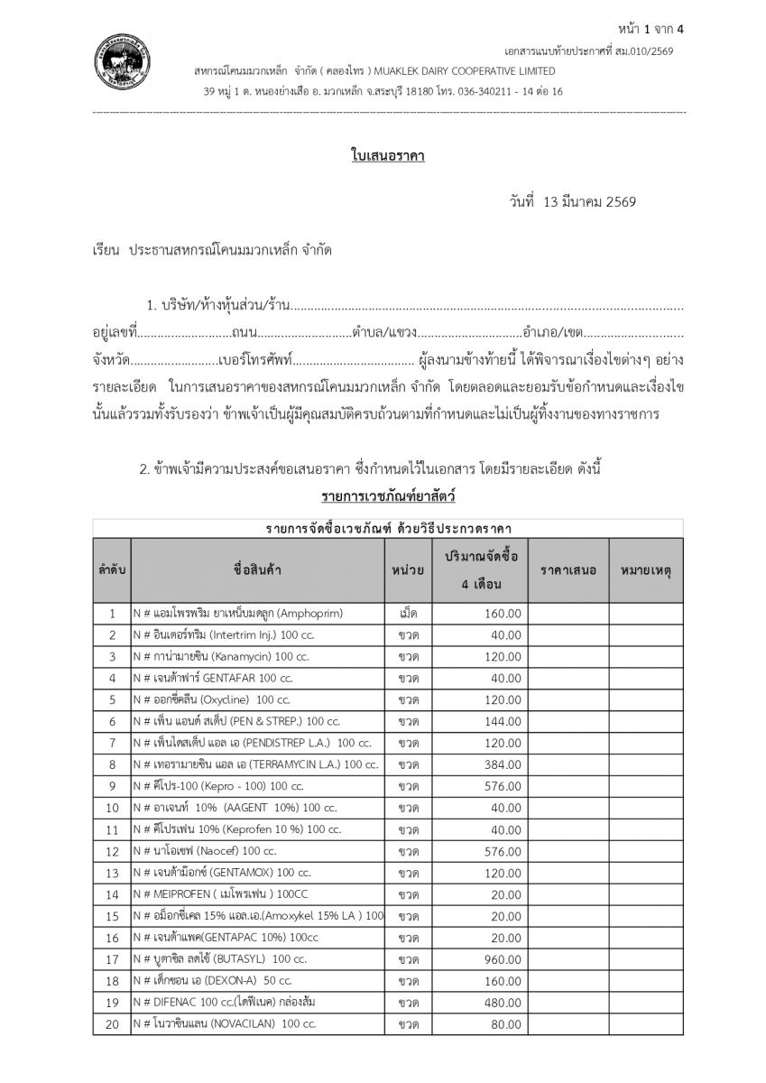ประกาศ เรื่อง ผลการจัดซื้อเวชภัณฑ์ยาสัตว์ ด้วยวิธีประกวดราคา ระยะเวลา 4 เดือน (1 ธ.ค. 68 - 31 มี.ค. 69)