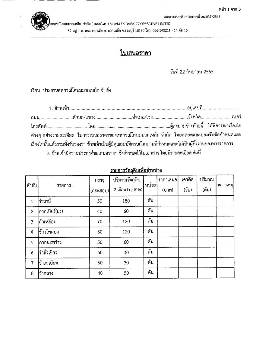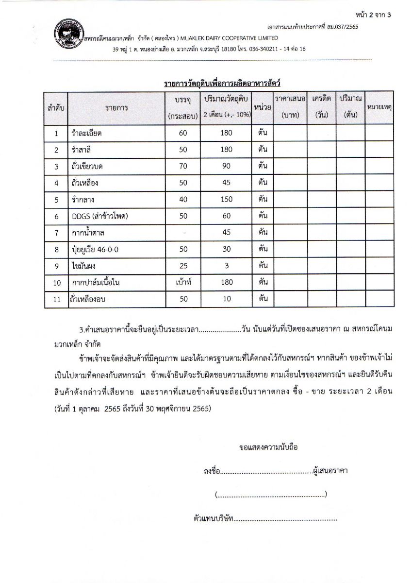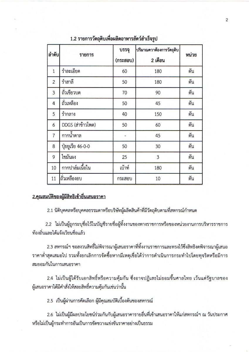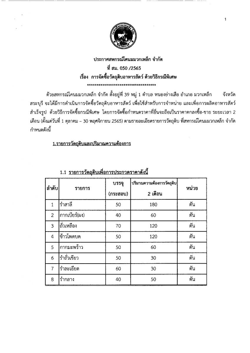 ประกาศ การจัดซื้อวัตถุดิบอาหารสัตว์ ด้วยวิธีกรณีพิเศษ