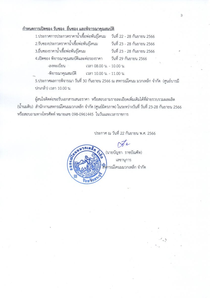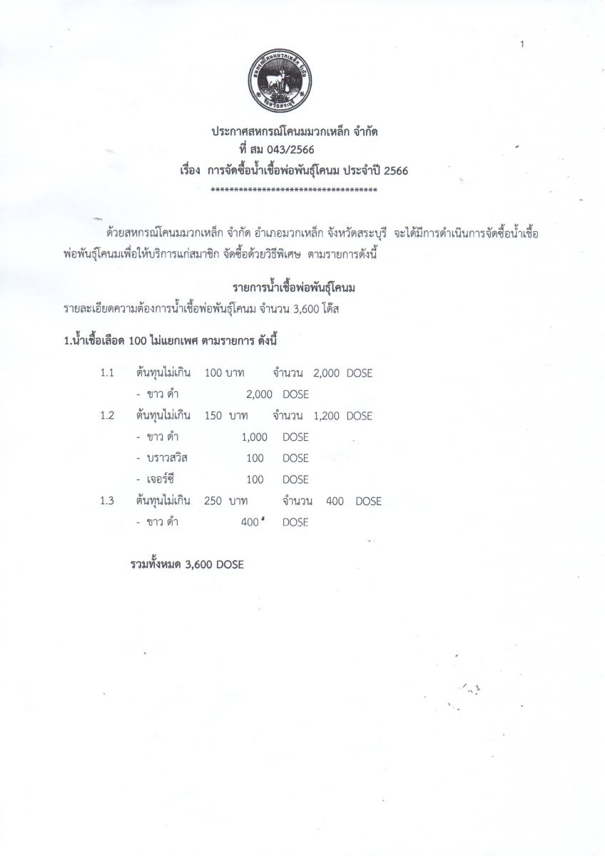 ประกาศ การจัดซื้อน้ำเชื้อพ่อพันธุ์โคนม ประจำปี 2566