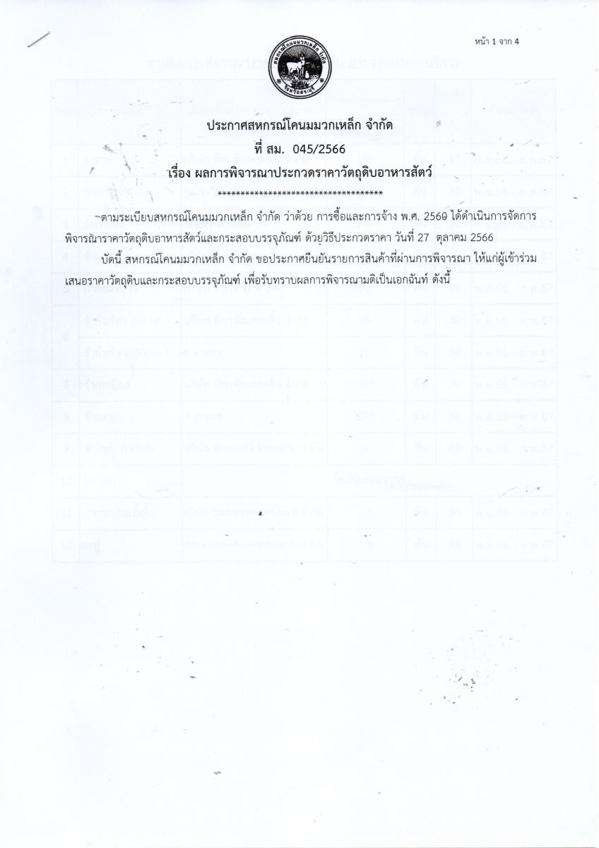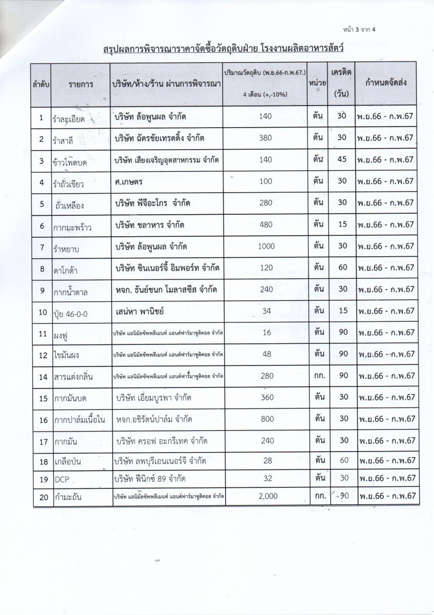ประกาศ ผลการพิจารณาประกวดราคาวัตถุดิบอาหารสัตว์