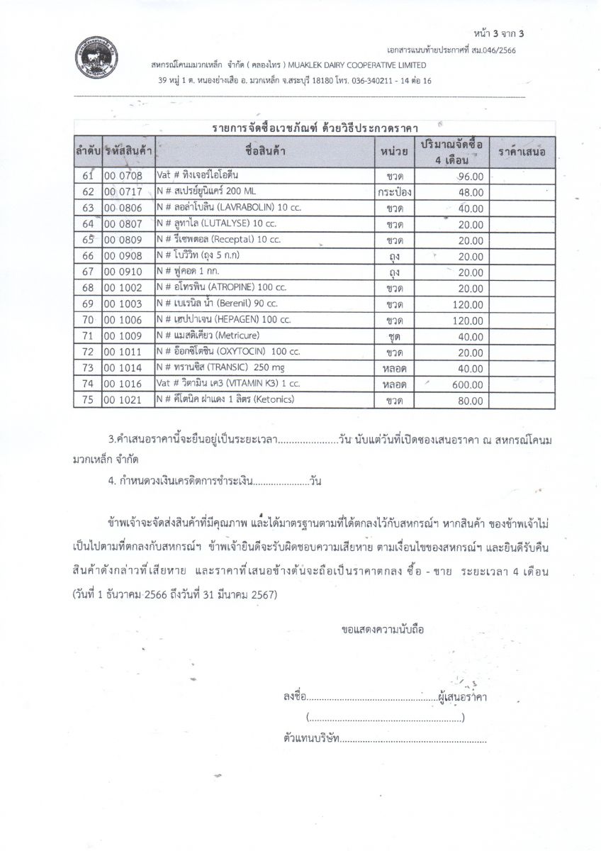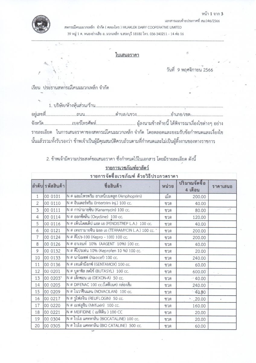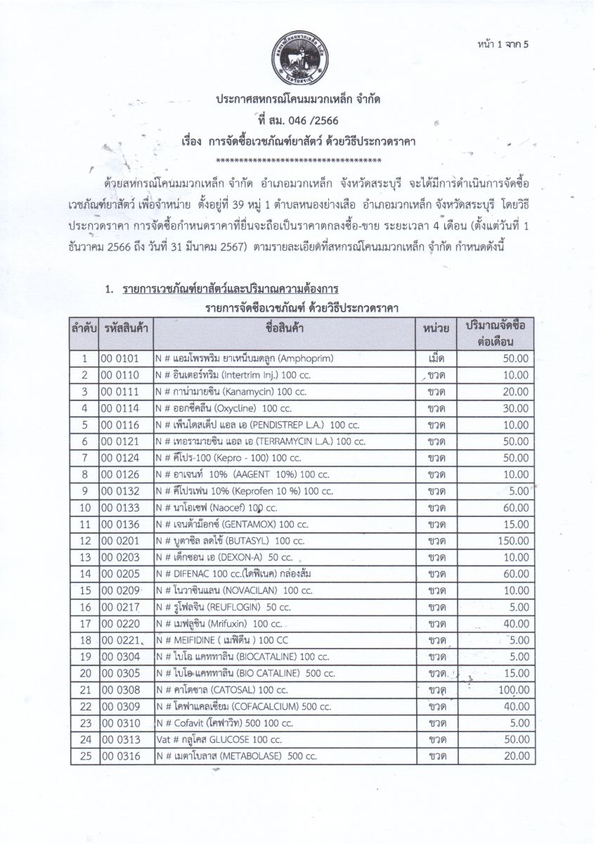 ประกาศ เรื่อง การจัดซื้อเวชภัณฑ์ยาสัตว์ ด้วยวิธีประกวดราคา ระยะเวลา 4 เดือน ( 1 ส.ค. - 30 พ.ย. 68 )