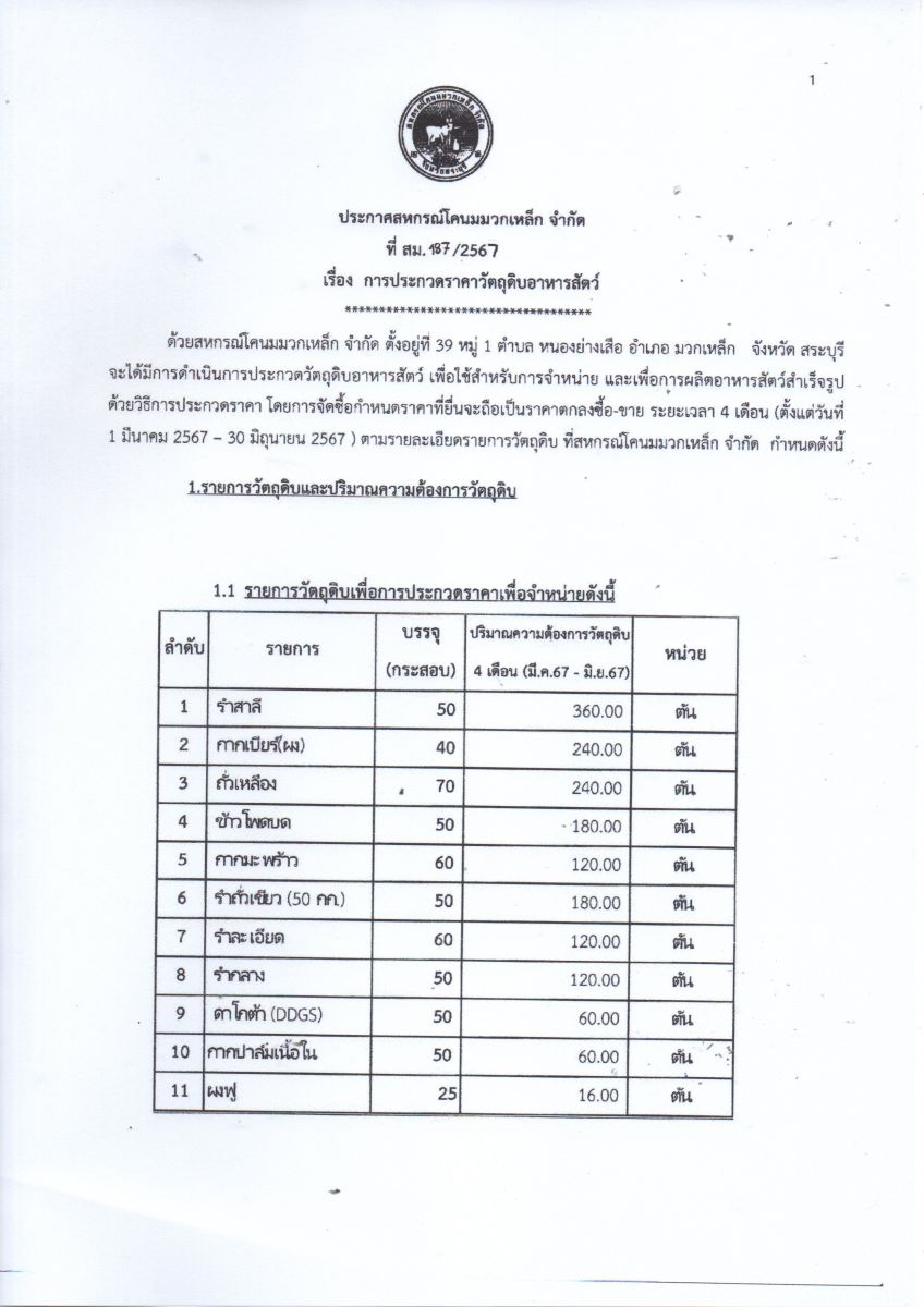 ประกาศ การประกวดราคาวัตถุดิบอาหารสัตว์