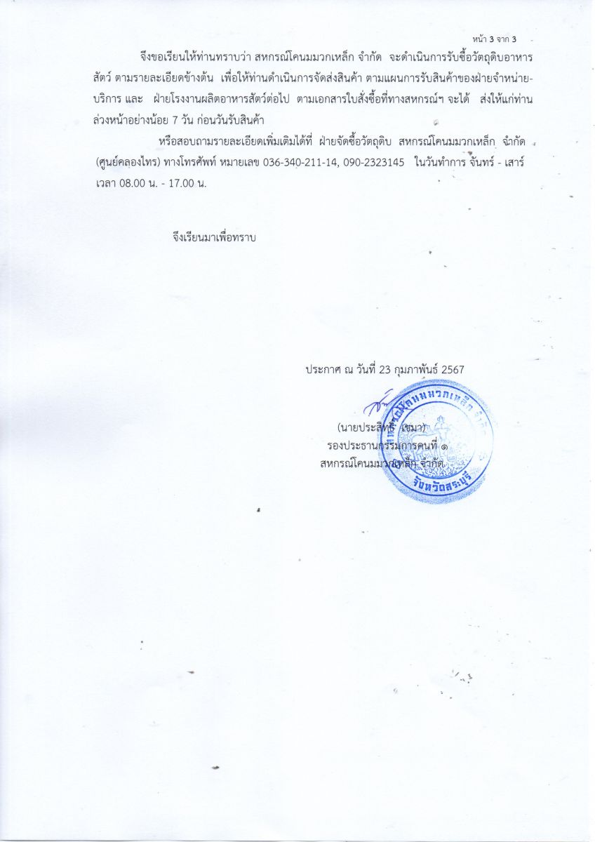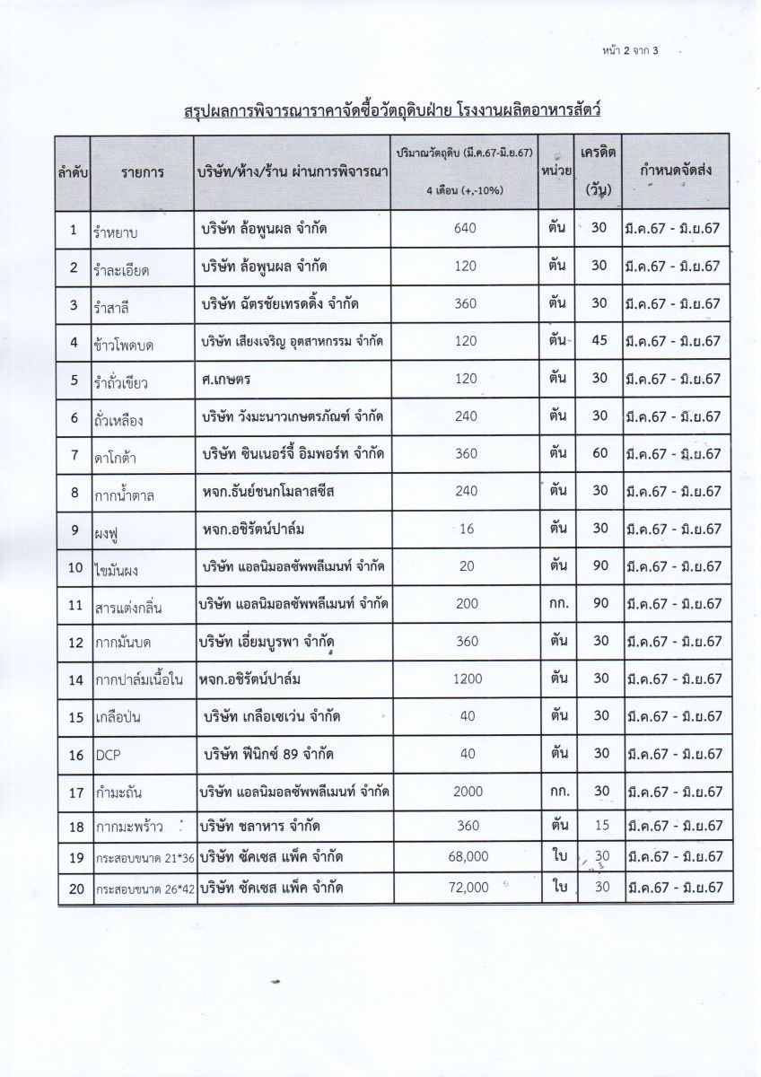 ประกาศ เรื่อง ผลการพิจารณาประกวดราคาวัตถุดิบอาหารสัตว์