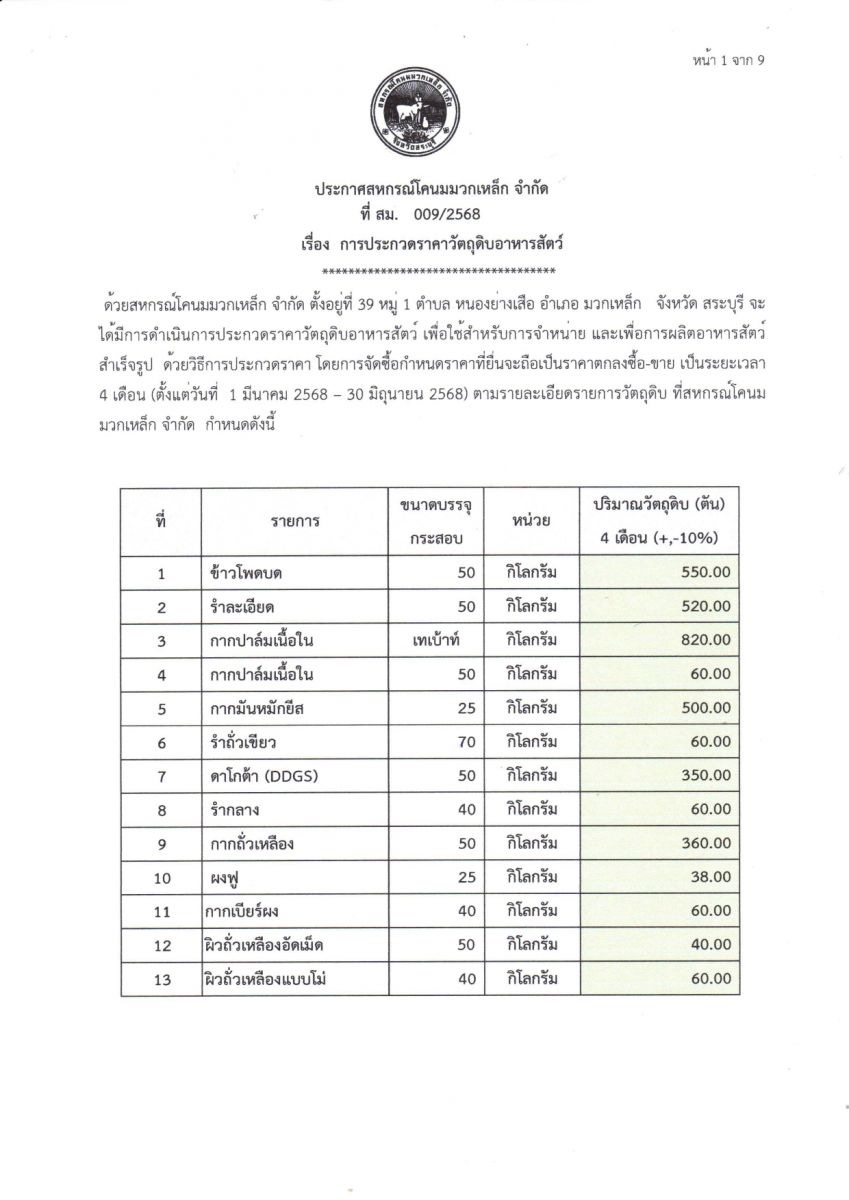 ประกาศ เรื่อง การประกวดราคาวัตถุดิบอาหารสัตว์