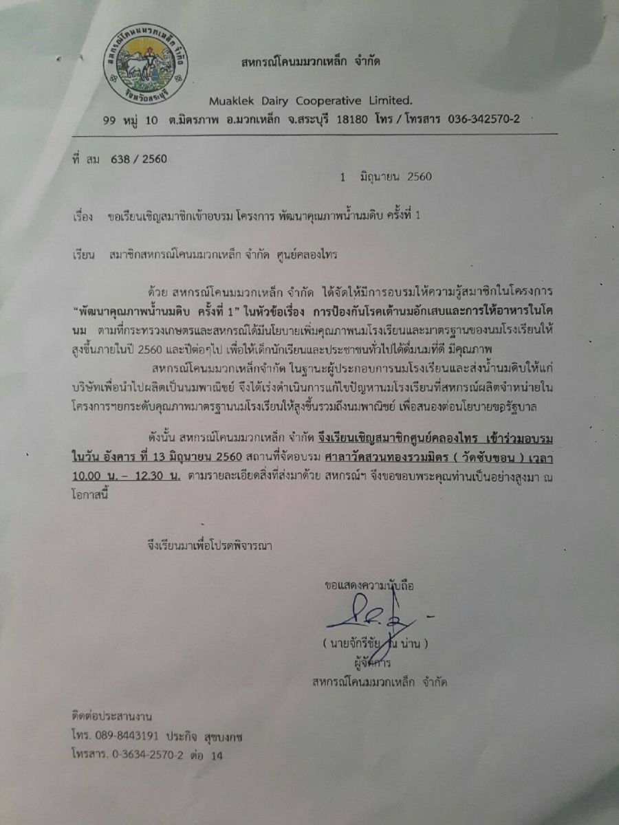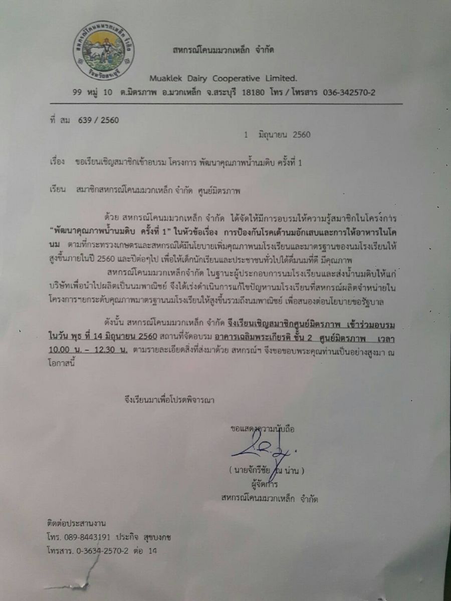 ที่ปรึกษาสหกรณ์โคนมมวกเหล็ก