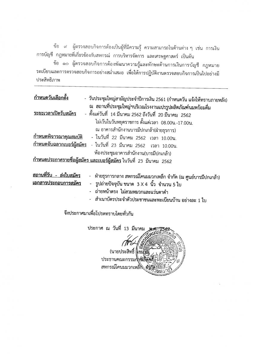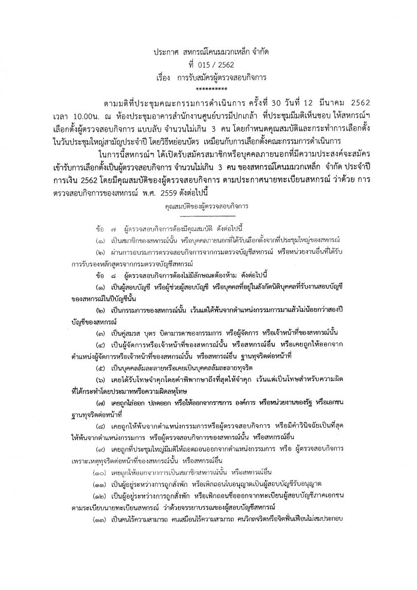 ประกาศการรับสมัครผู้ตรวจสอบกิจการ