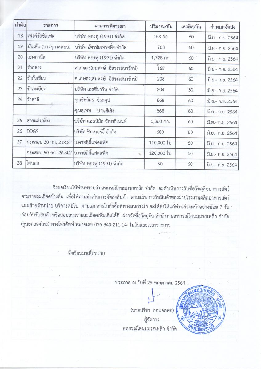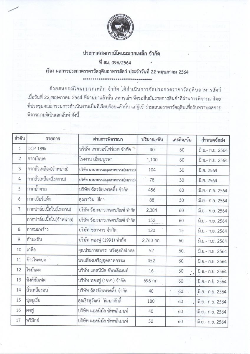 เรื่อง : ประกาศ ผลการประกวดราคาวัตถุดิบอาหารสัตว์ ประจำวันที่ 22 พ.ค. 64
