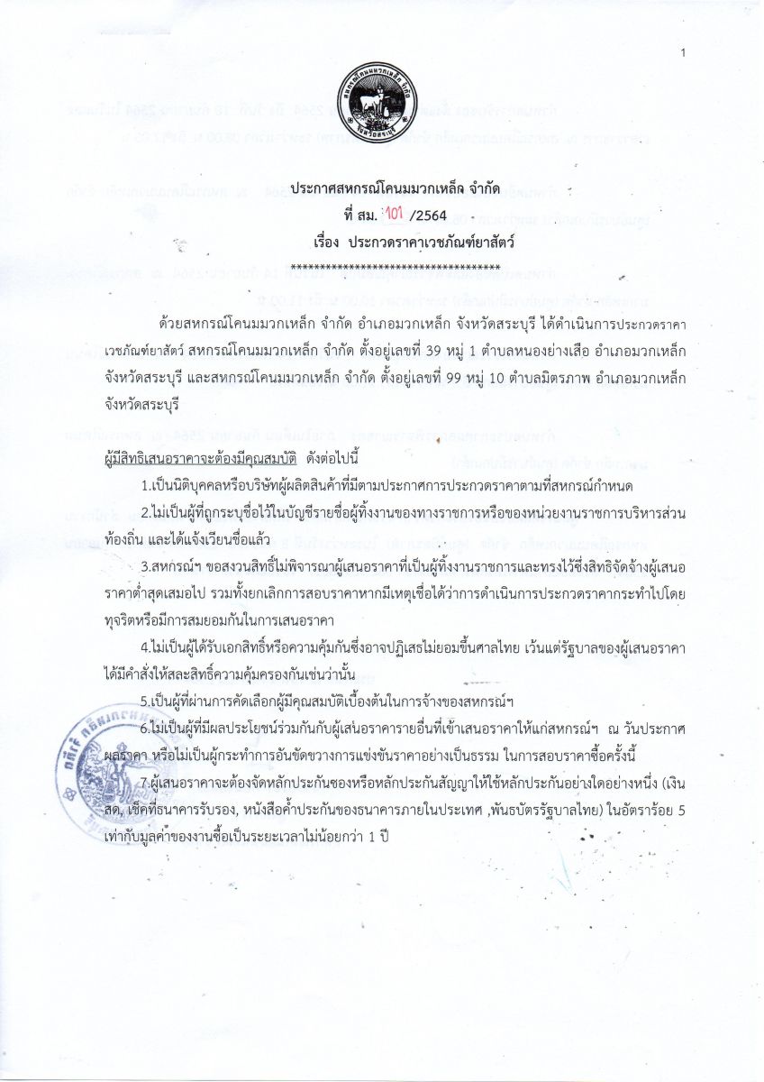 ประกาศ เรื่อง ผลการพิจารณาประกวดราคาวัตถุดิบอาหารสัตว์ 11/มี.ค./2568