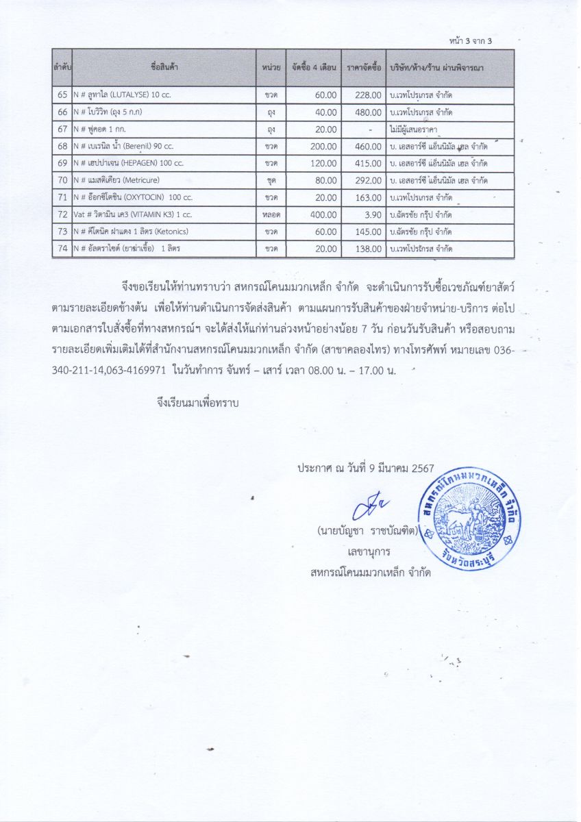 ประกาศ เรื่อง การจัดซื้อเวชภัณฑ์ยาสัตว์ ด้วยวิธีประกวดราคา ระยะเวลา 4 เดือน ( 1 ส.ค. - 30 พ.ย. 68 )