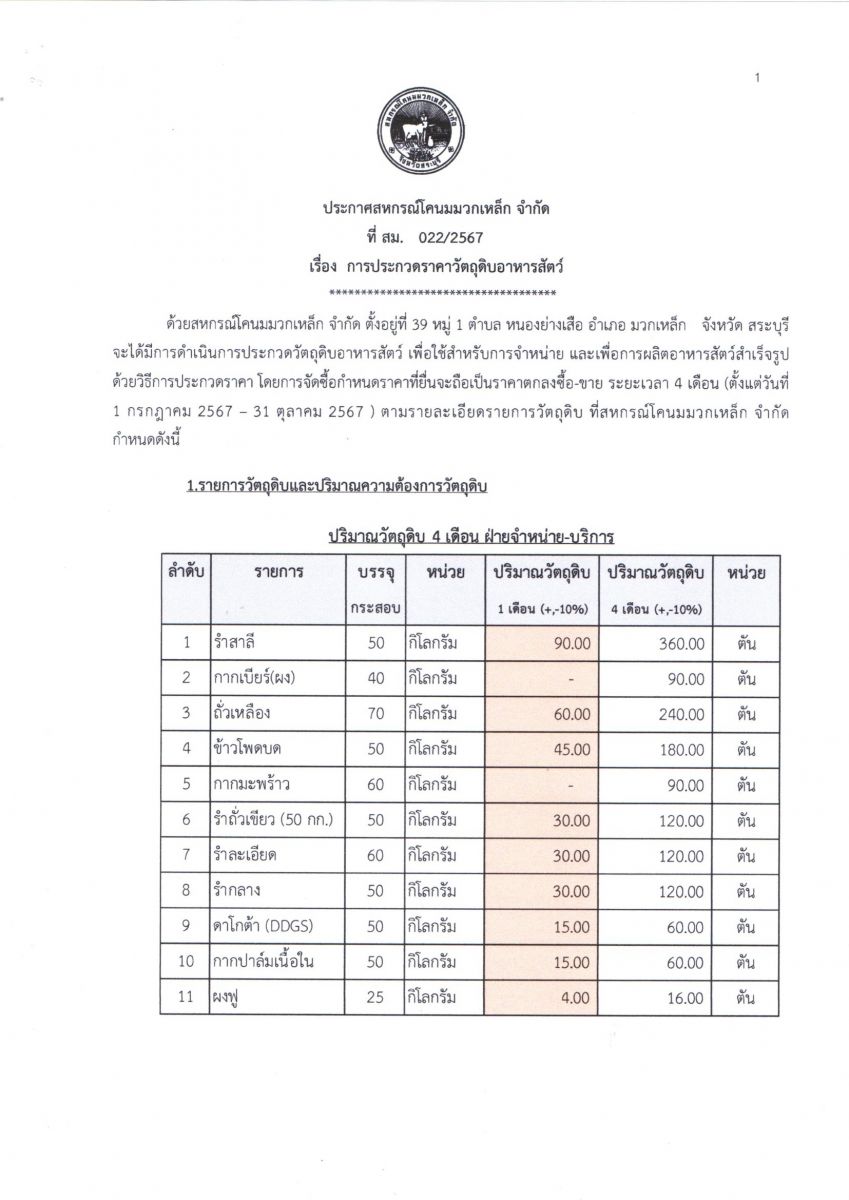 เรื่อง การประกวดราคาวัตถุดิบอาหารสัตว์