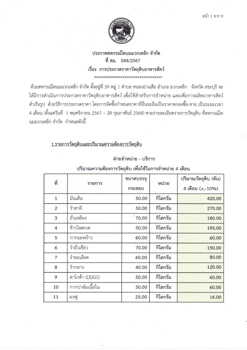 ประกาศ เรื่อง การประกวดราคาวัตถุดิบอาหารสัตว์