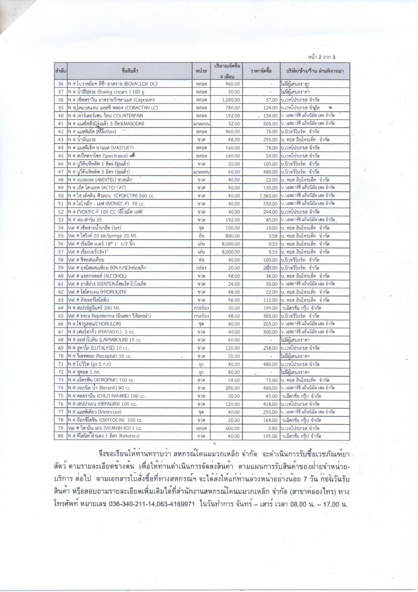 ประกาศ เรื่อง ผลการจัดซื้อเวชภัณฑ์ยาสัตว์ ด้วยวิธีประกวดราคา