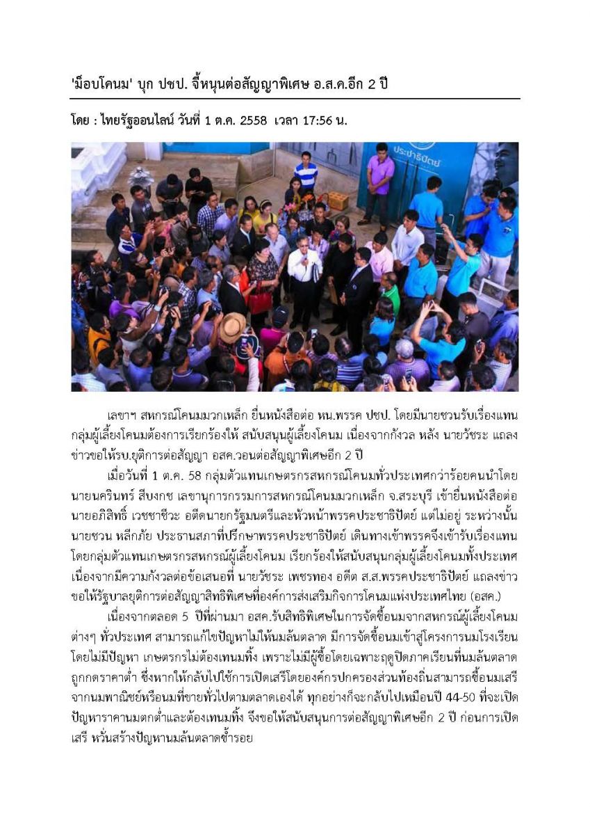 ม็อบโคนม บุก ปชป. จี้หนุนต่อสัญญาพิเศษ อ.ส.ค.อีก 2 ปี
