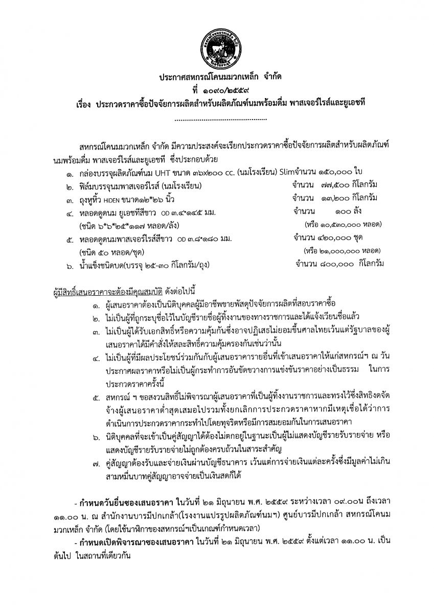 ร่วมประกวดปัจจัยการผลิตสำหรับผลิตภัณฑ์นมพร้อมดื่ม พาสเจอร์ไรส์และยูเอชที