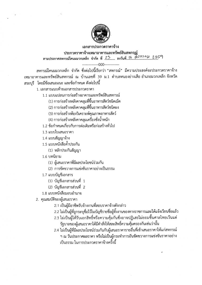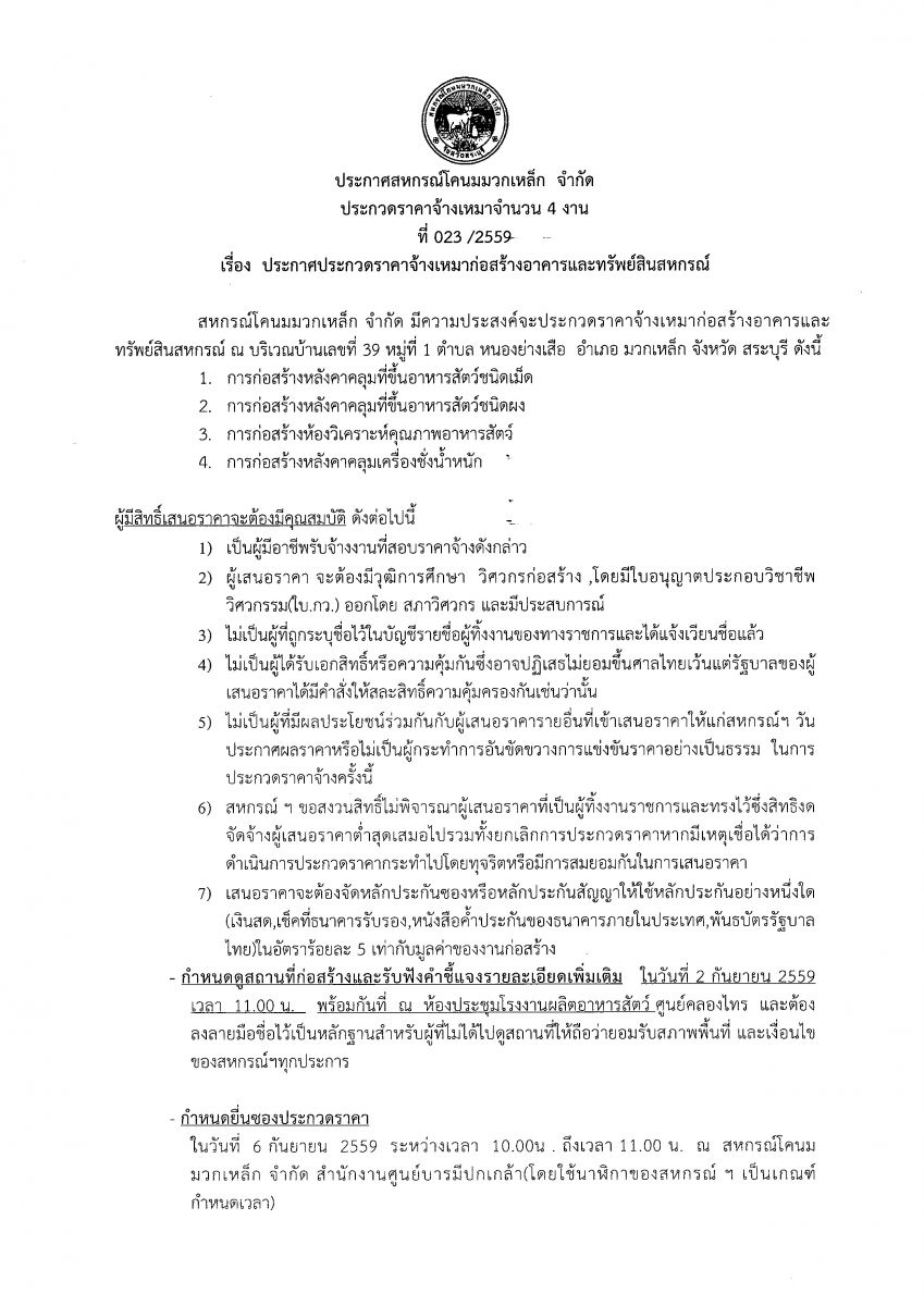 ประกาศประกวดราคาจ้างเหมาก่อสร้างอาคารและทรัพย์สินสหกรณ์