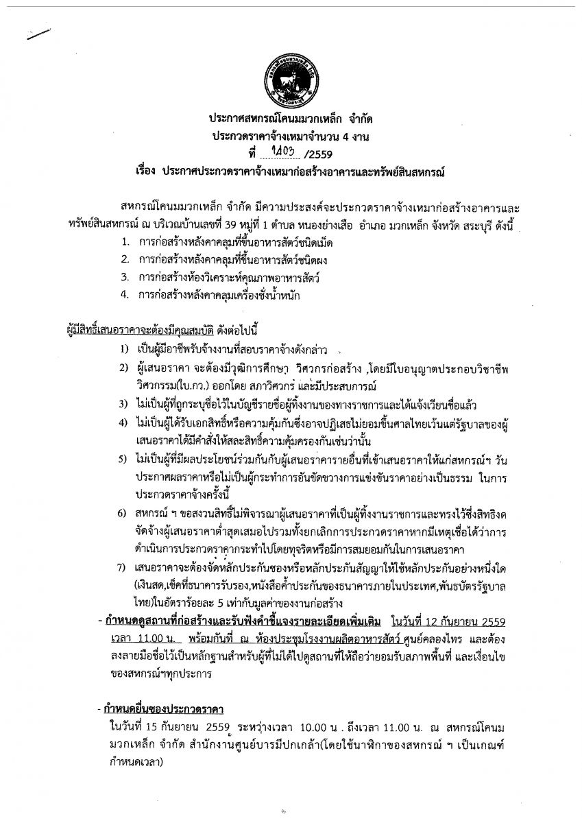 ขอขยายเวลาประกาศประกวดราคาจ้างเหมาก่อสร้างอาคารและทรัพย์สินสหกรณ์