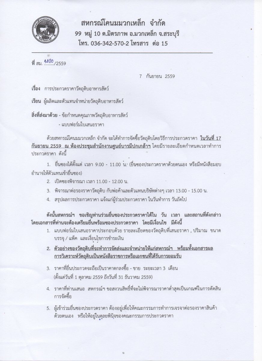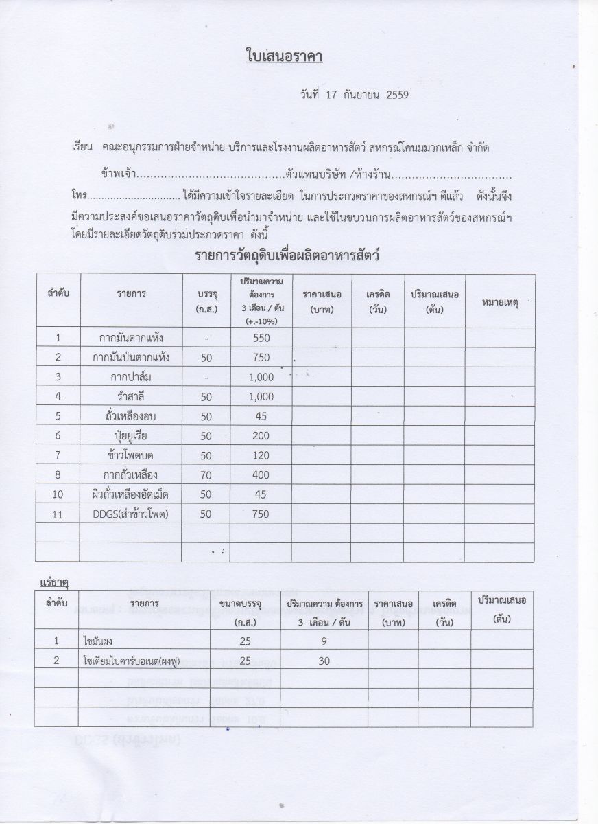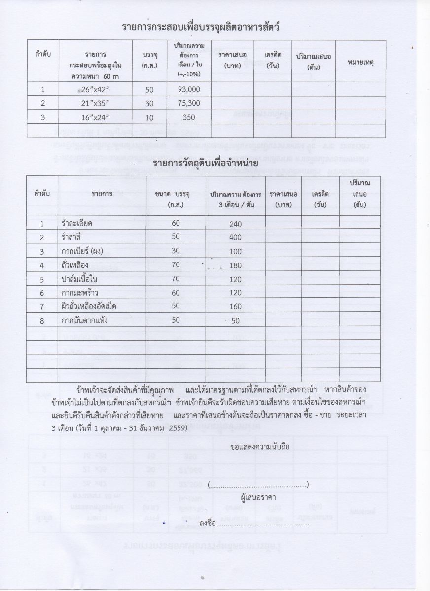 ประกวดราคาวัตถุดิบอาหารสัตว์