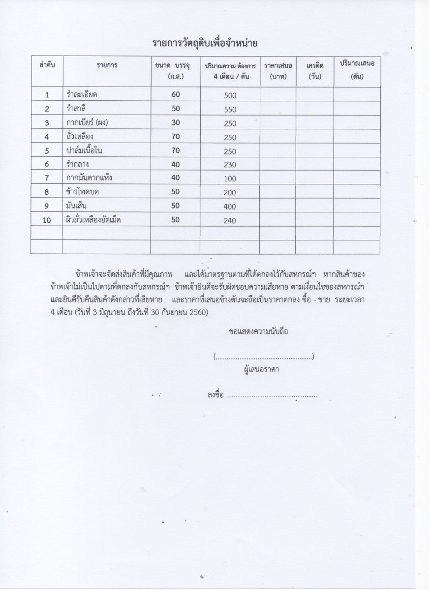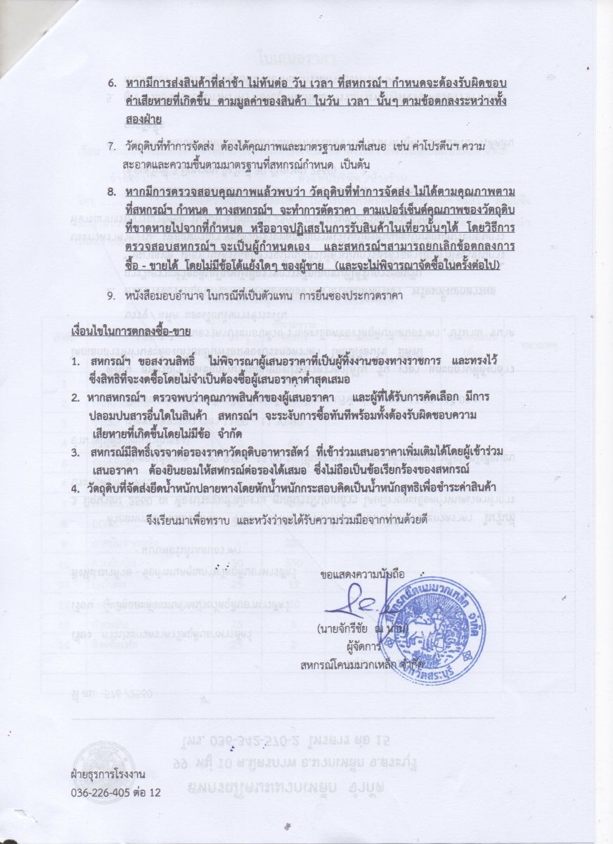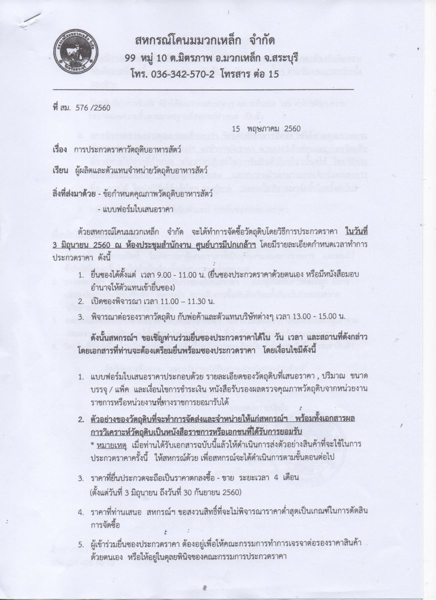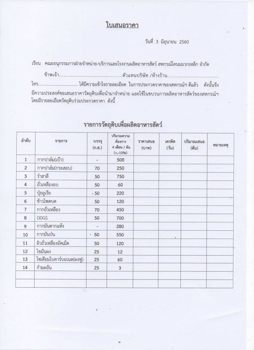 ขอเชิญร่วมประกวดราคาวัตถุดิบอาหารสัตว์