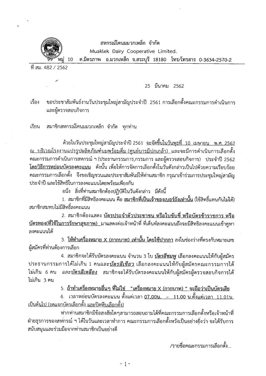 ประชาสัมพันธ์งานวันประชุมใหญ่สามัญประจำปี 2561 การเลือกตั้งคณะกรรมการดำเนินการและผู้ตรวจสอบกิจการ