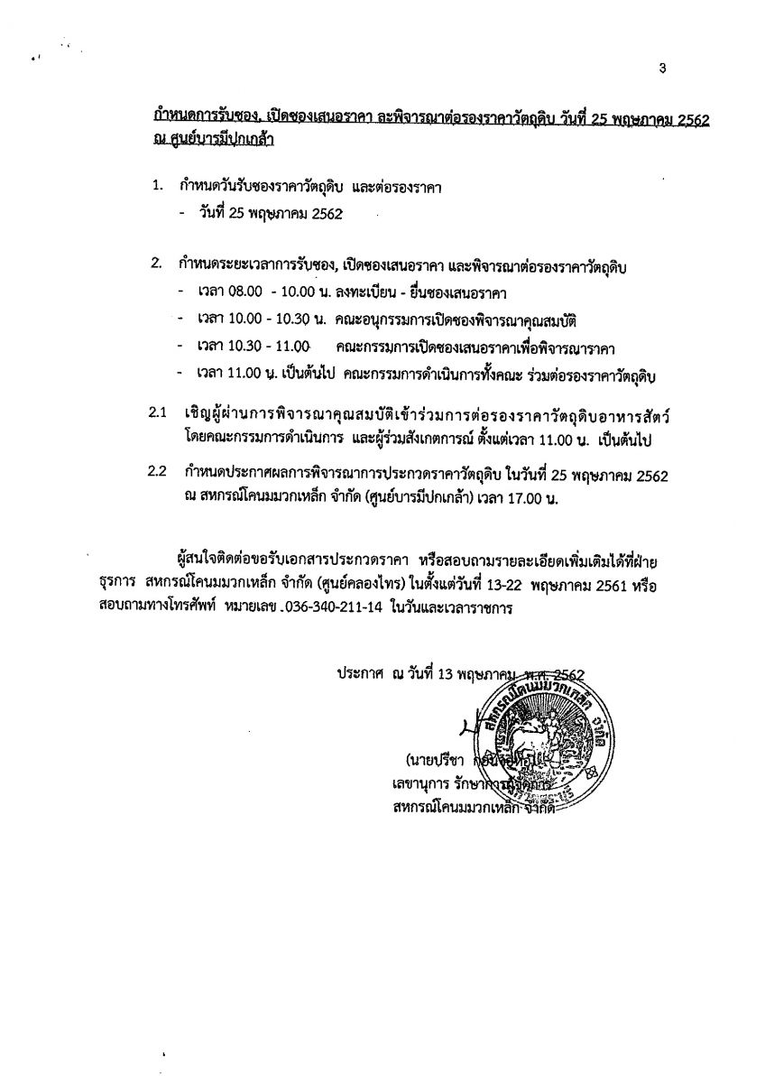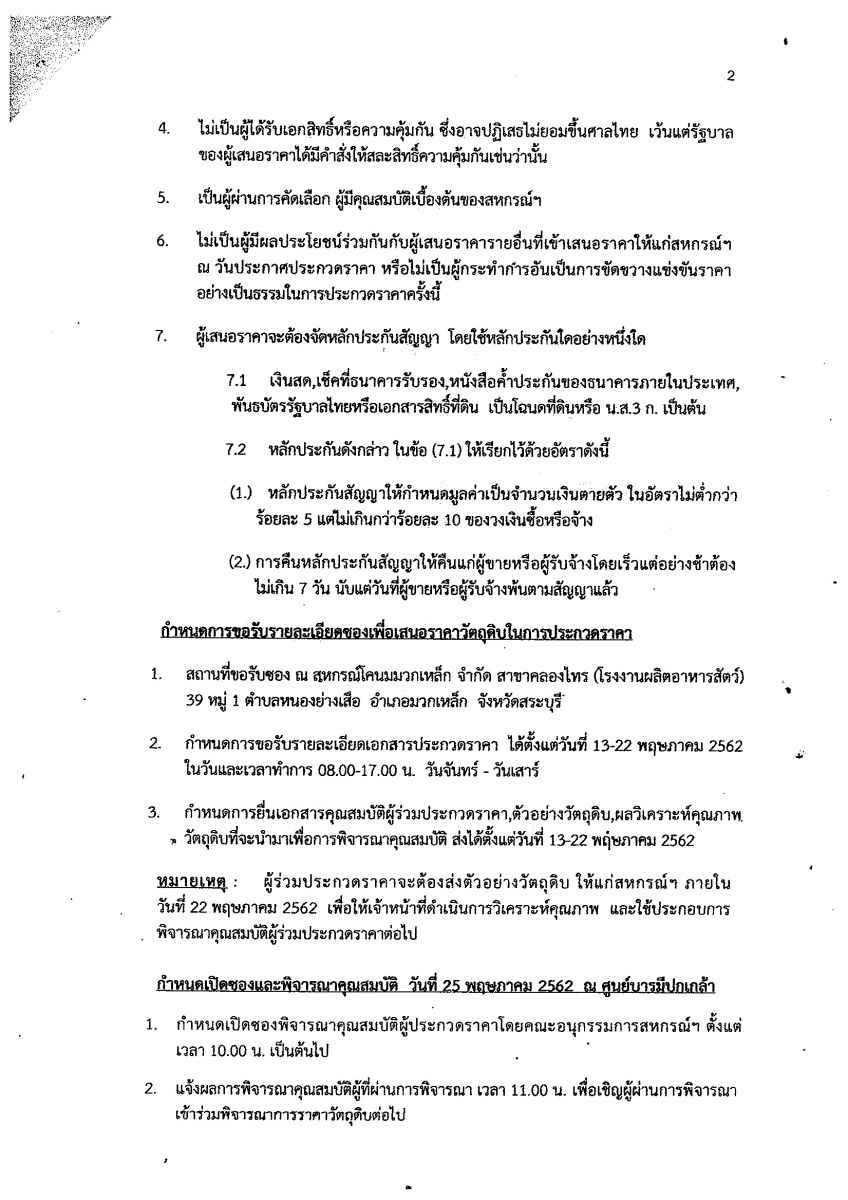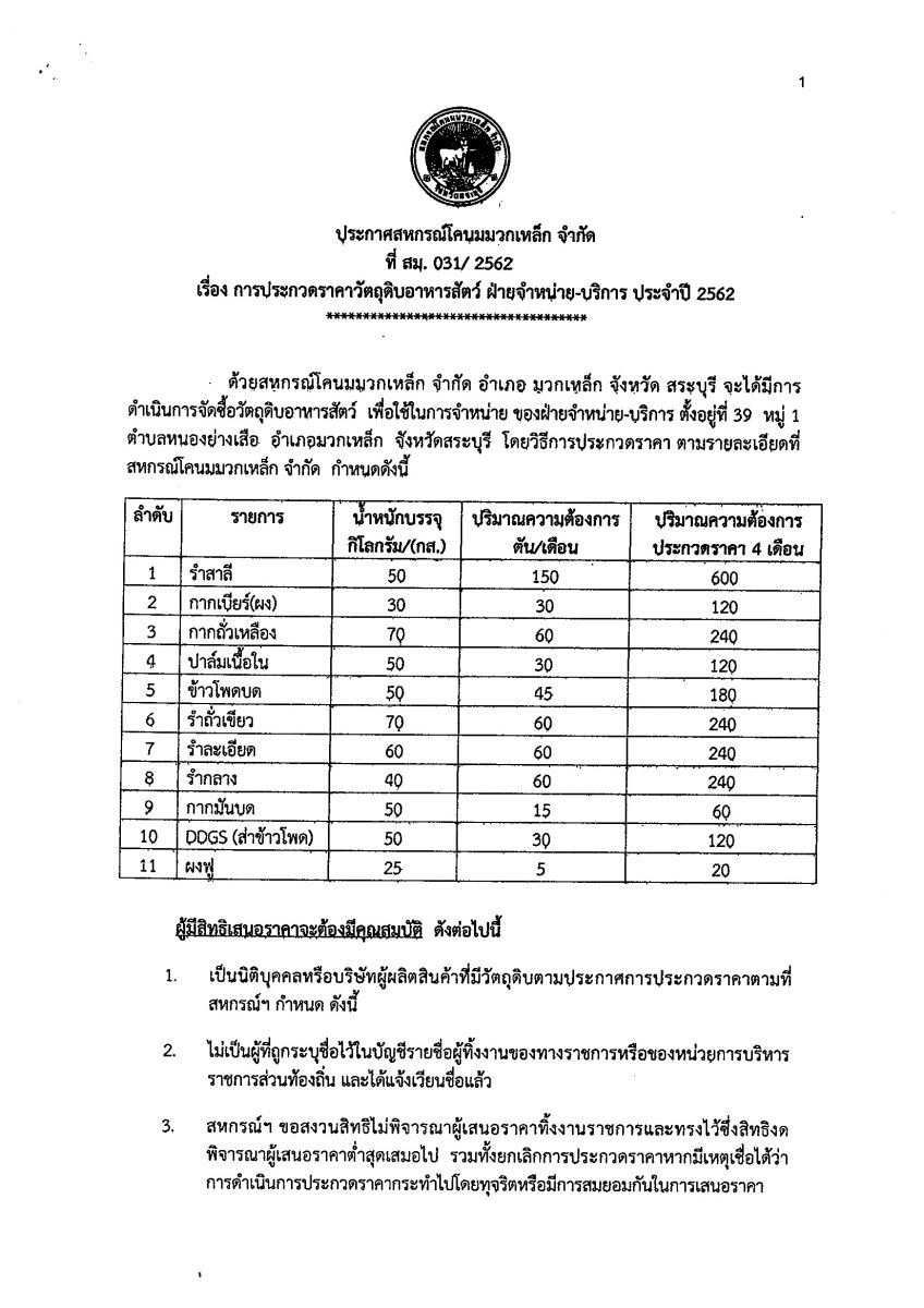 การประกวดราคาวัตถุดิบอาหารสัตว์ ฝ่ายจำหน่าย-บริการ ประจำปี 2562